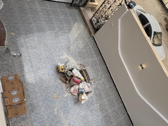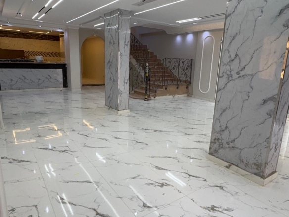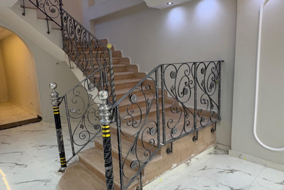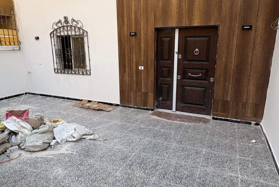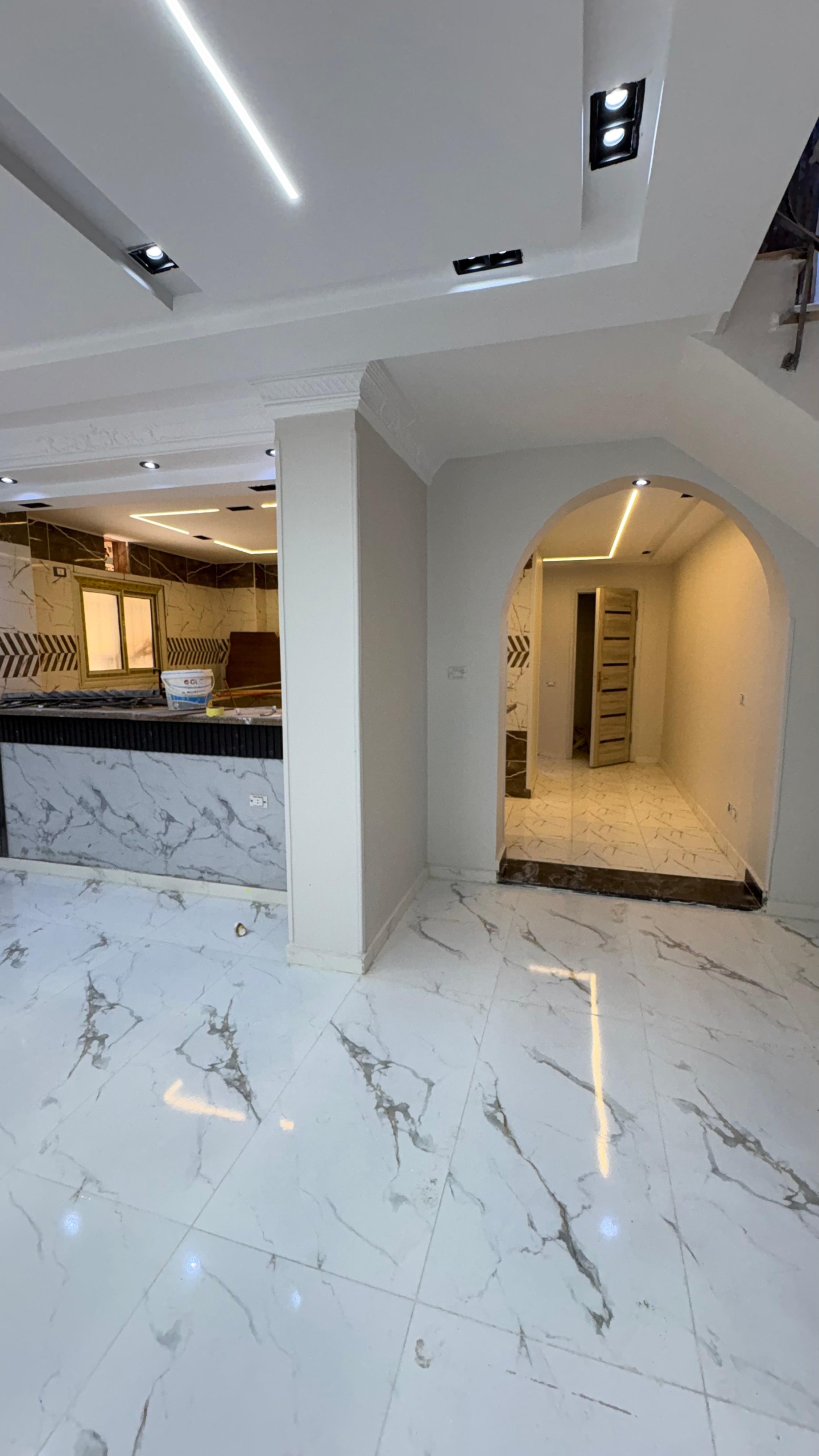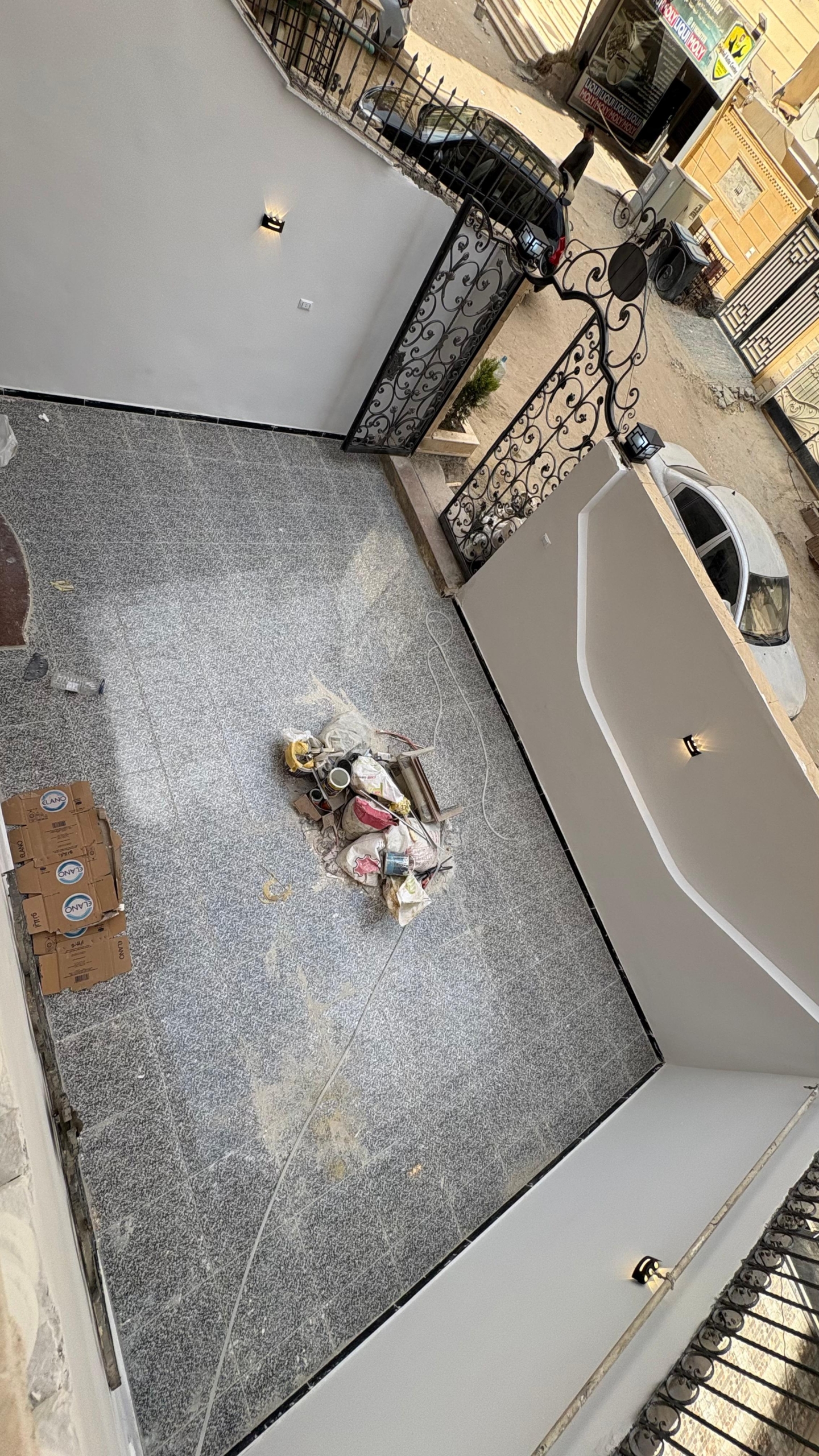الدور الأرضي: ريسبشن واسع 6 قطع – حمام رئيسي – غرفة تخزين – مطبخ كبير.