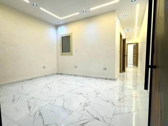 الدور الأول: 3 غرف نوم كبيرة (منهم غرفة ماستر بحمام خاص) – ليفينج – حمام.